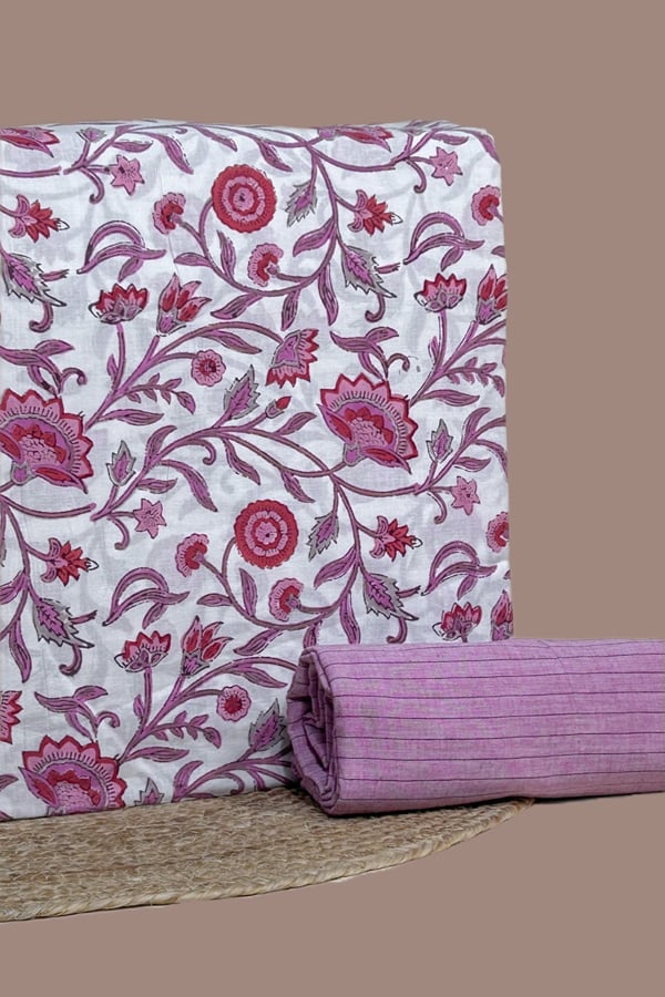 2.5mtr Each – HandBlock Printed Pure Soft Cotton Top With Handloom Cotton Bottom Fabric Set