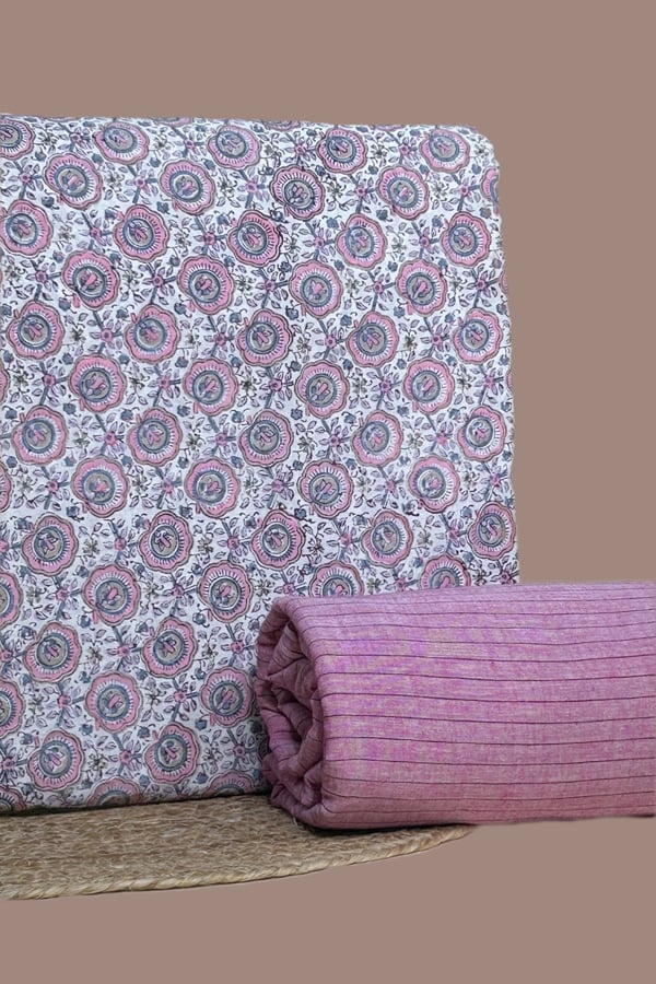 2pc Pure Soft Cotton Blockprinted Top and Bottom Fabric Set