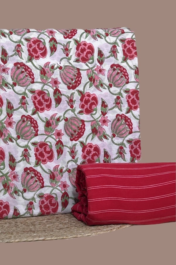 2pc Pure Soft Cotton Blockprinted Top and Bottom Fabric Set