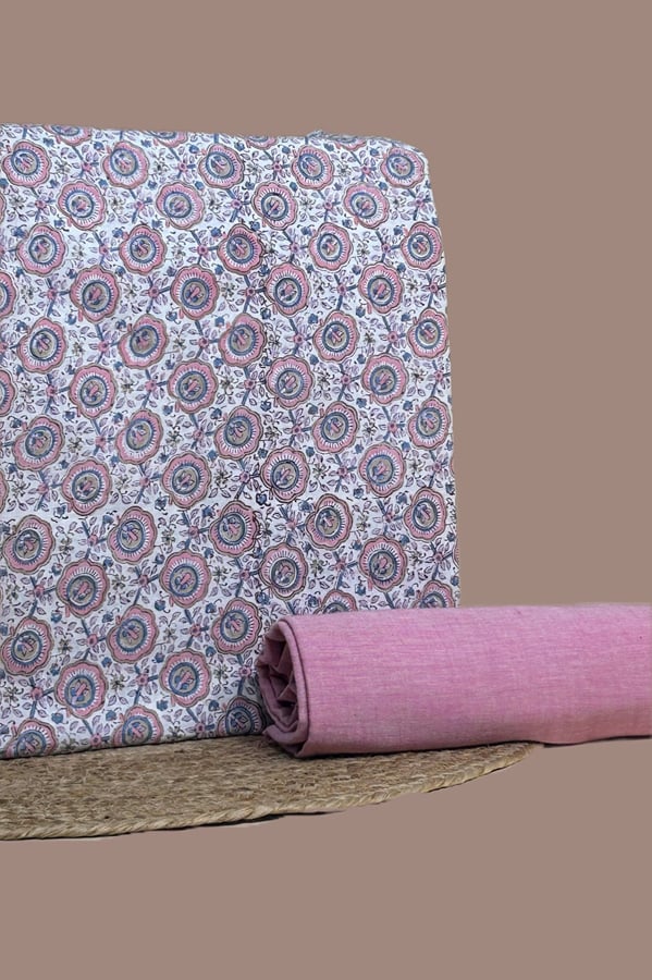 2.5mtr Each – HandBlock Printed Pure Soft Cotton Top With Handloom Cotton Bottom Fabric Set