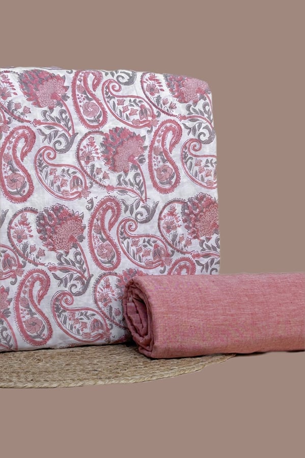 2pc Pure Soft Cotton Blockprinted Top and Bottom Fabric Set