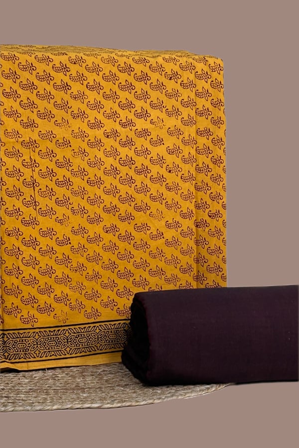 Yellow – 2pc Bagh Handblock Top and Mangalgiri Bottom Cotton Fabric Set