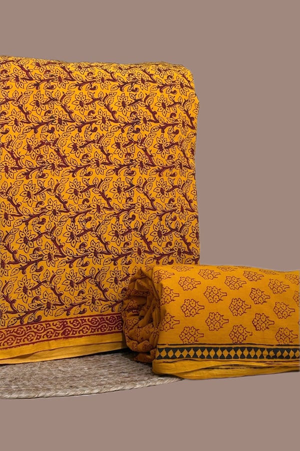 2pc Pure Soft Cotton Blockprinted Top and Bottom Fabric Set