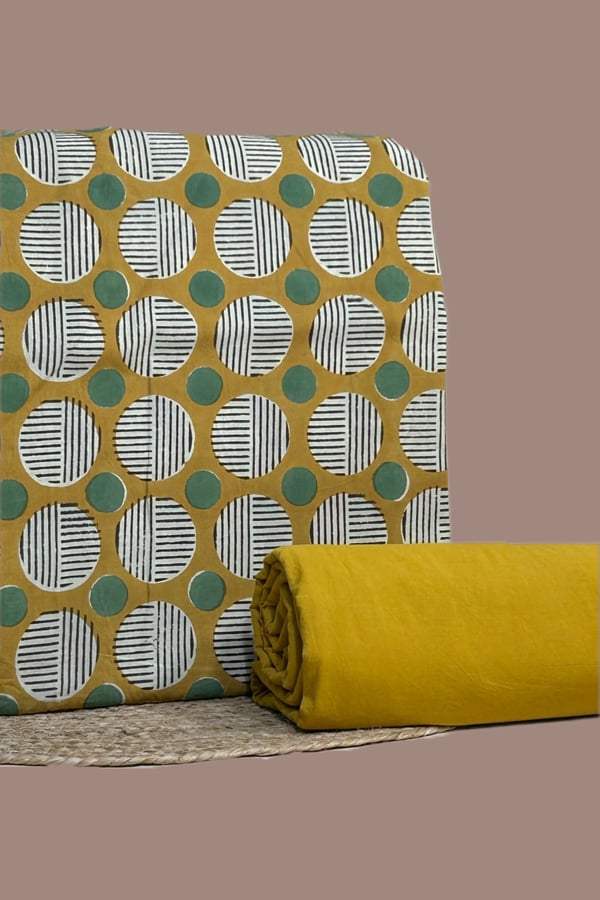Yellow – 2pc Bagru HandCrafted Top and Plain Dyed Cotton Bottom Fabric Set
