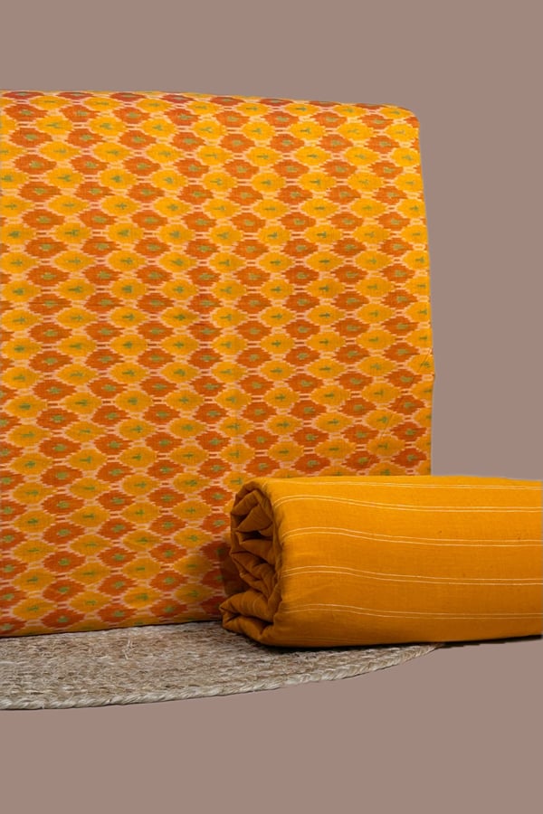 Yellow – 2pc CottonSilk Soft Ikkat Top and Handloom Soft Cotton Bottom Fabric Set