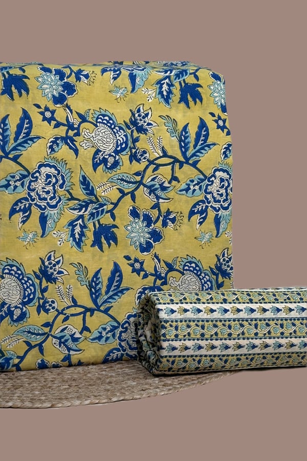 Yellow – 2pc Pure Soft Cotton Blockprinted Top and Bottom Fabric Set