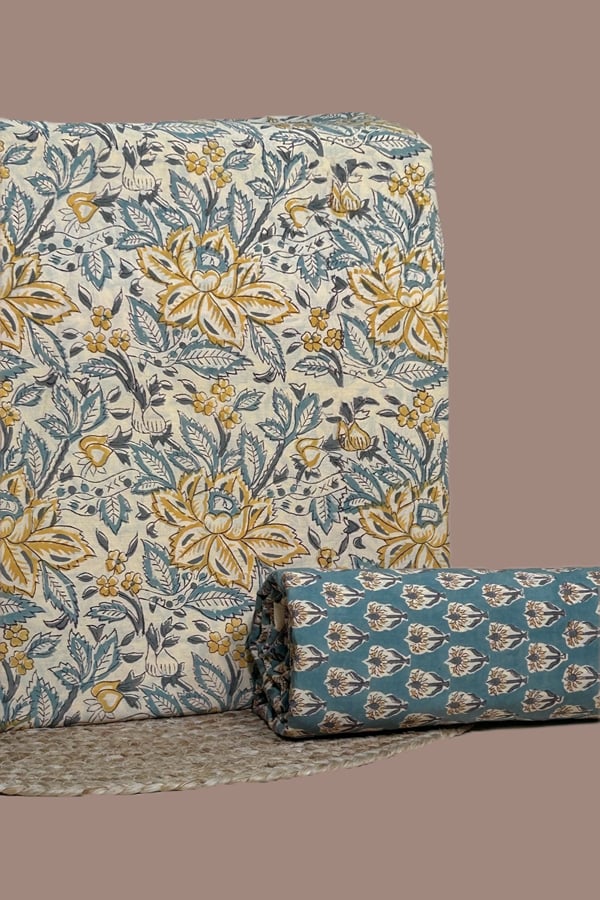 2.5mtr Each – HandBlock Printed Pure Soft Cotton Top Bottom Fabric Set
