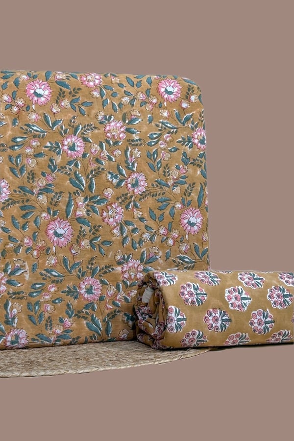 Yellow – 2pc Pure Soft Cotton Blockprinted Top and Bottom Fabric Set