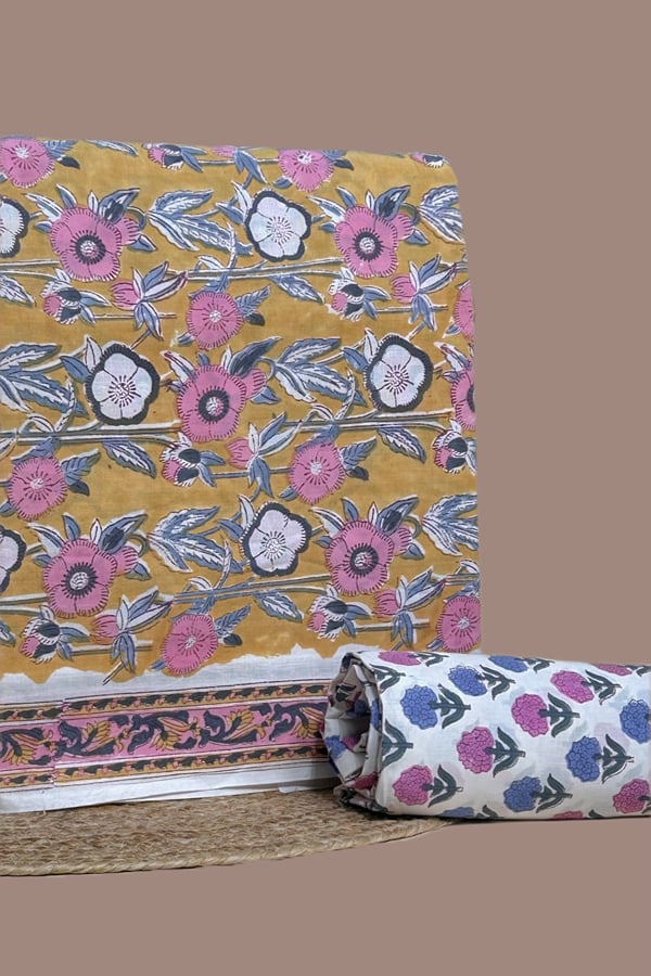 Yellow – 2pc Pure Soft Cotton Blockprinted Top and Bottom Fabric Set