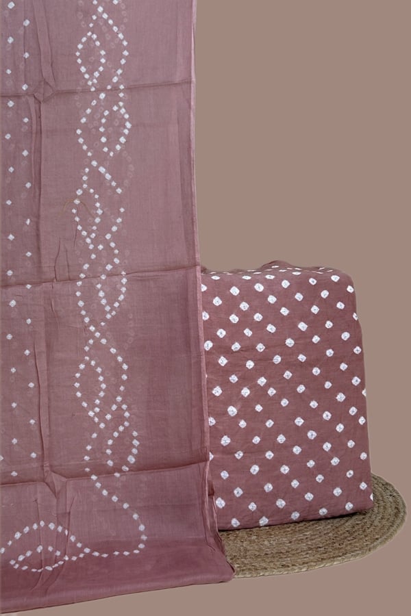 2Pc Bandhani Cotton Dupatta with Cotton Bandhani Top Fabric Set