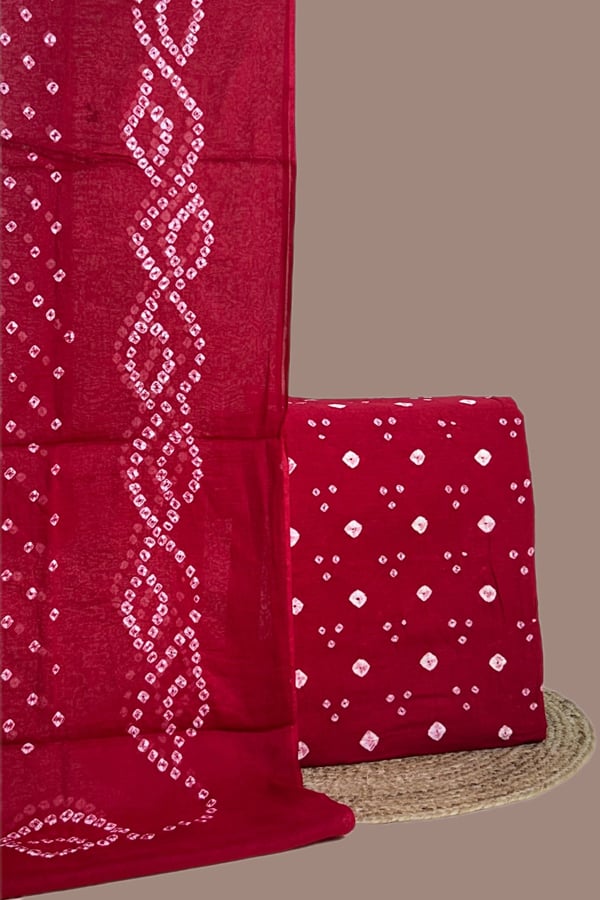 2.5mtr Each – Hand Tie Dye Bandhani Cotton Dupatta with Cotton Bandhani Top Fabric Set