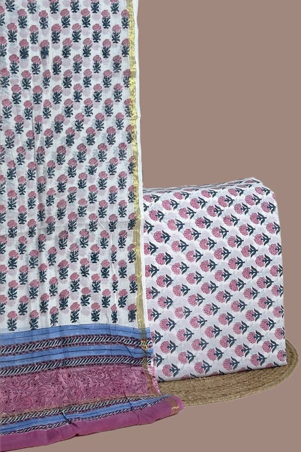 2.5mtr Each – Cotton Blockprinted Dupatta with HandBlock Printed Pure Soft Cotton Top Fabric Set