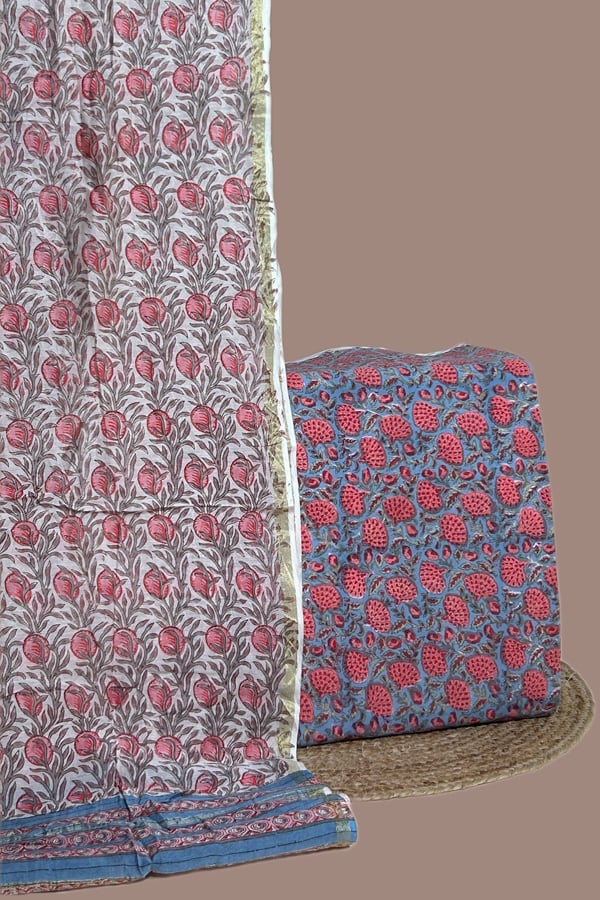 2.5mtr Each – Chanderi Silk Soft Dupatta with HandBlock Printed Pure Soft Cotton Top Fabric Set