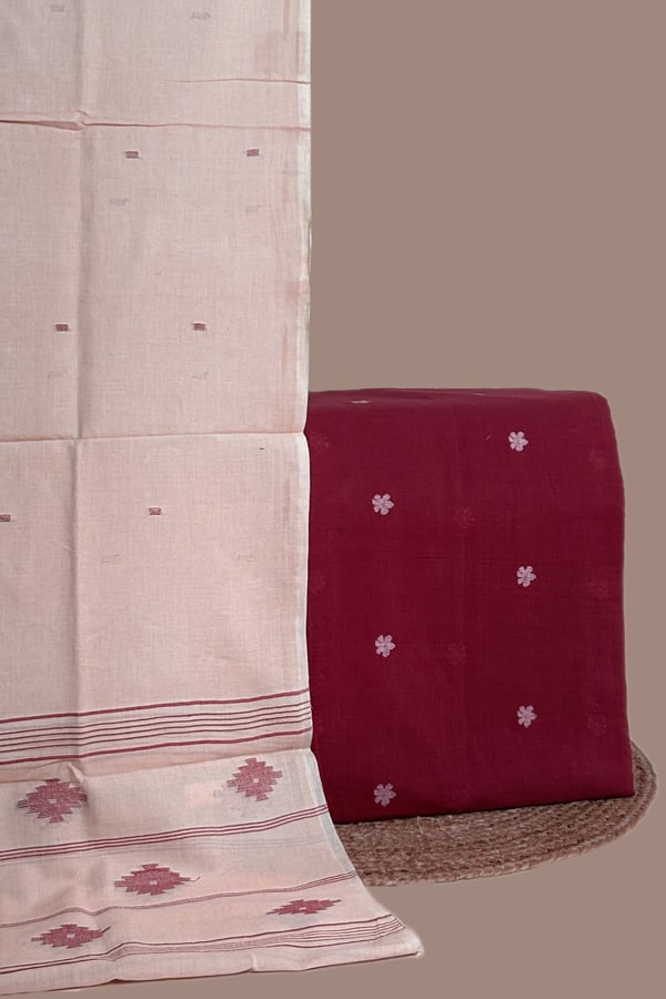 2.5mtr Each – Handloom Cotton Dupatta with Handloom Woven Design Cotton Top Fabric Set