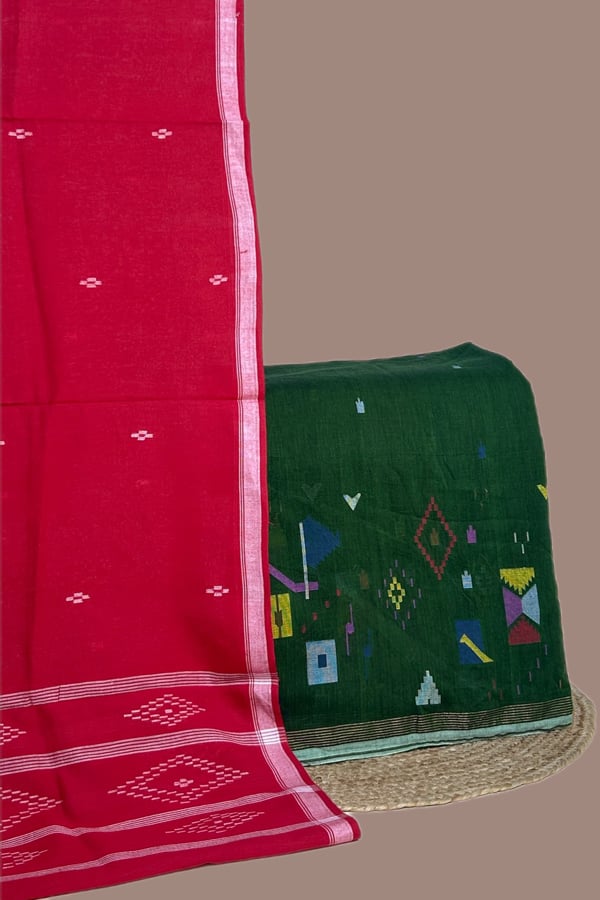 2pc Handloom Cotton Dupatta and Jamdani Intricate Woven Border Top Fabric Set