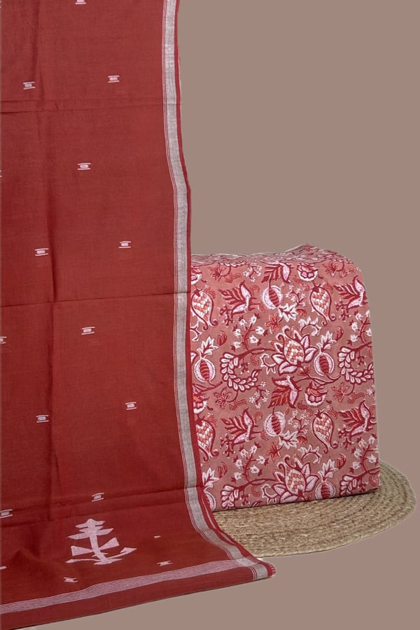 2.5mtr Each – Handloom Cotton Dupatta with HandBlock Printed Pure Soft Cotton Top Fabric Set