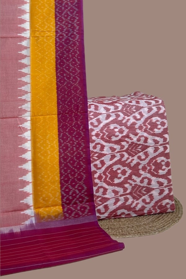 2pc Ikkat Cotton Dupatta and Handloom Soft Ikkat Cotton Top Fabric Set