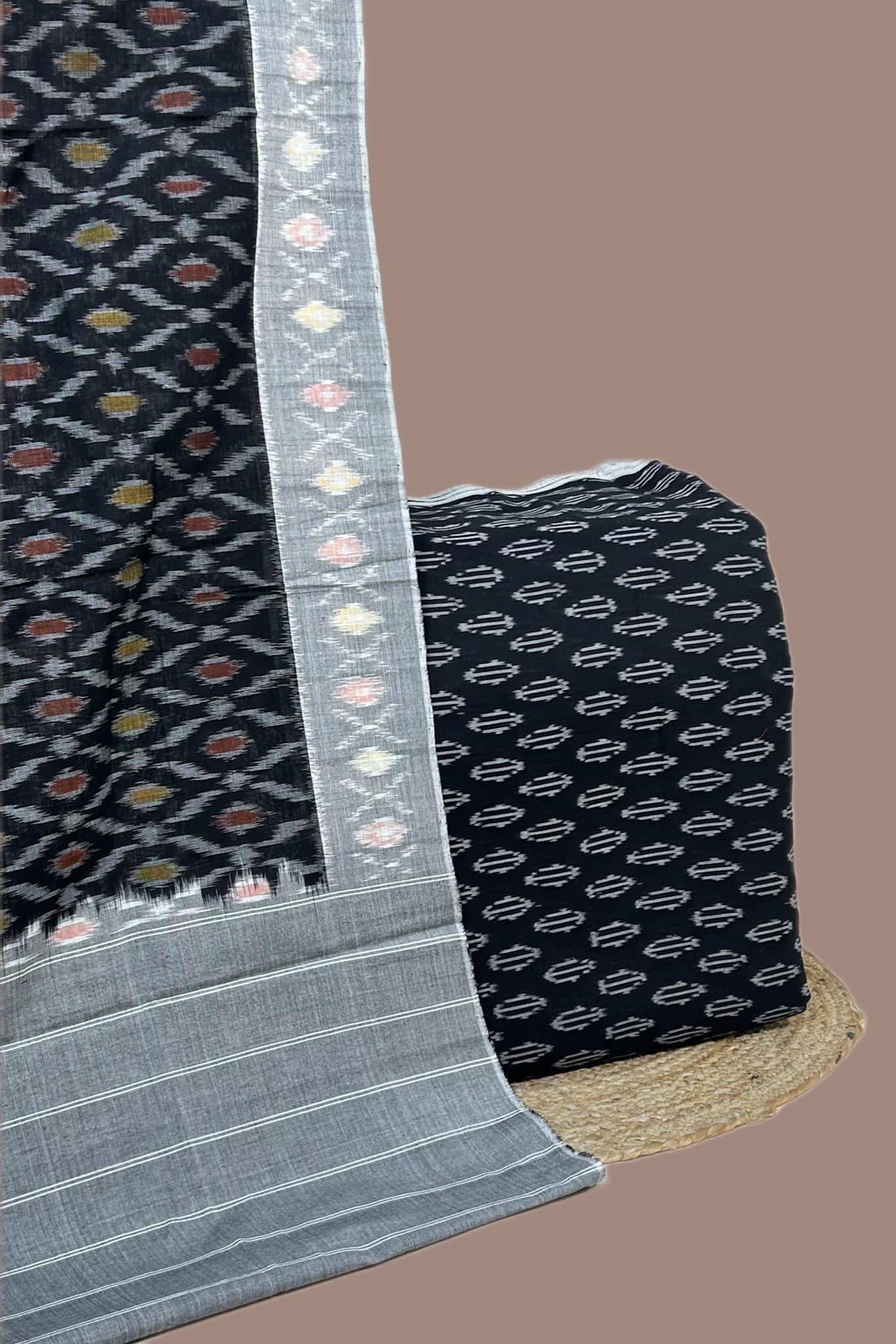 2.5mtr Each – Ikkat Cotton Dupatta with Hand Tie–Dye Mercerised Ikkat Top Fabric Set
