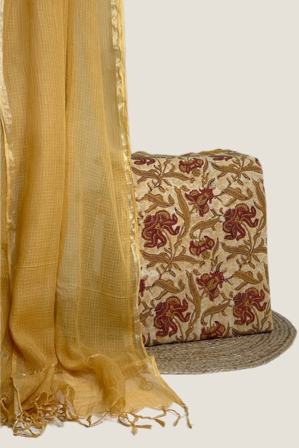 2.5mtr Each – Kota Doria Dupatta with Bagru HandBlock Cotton Top Fabric Set