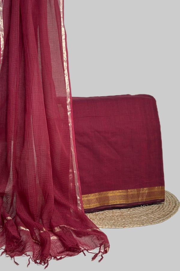 2.5mtr Each – Kota Doria Dupatta with Mangalgiri Zari Border Handwoven Cotton Top Fabric Set