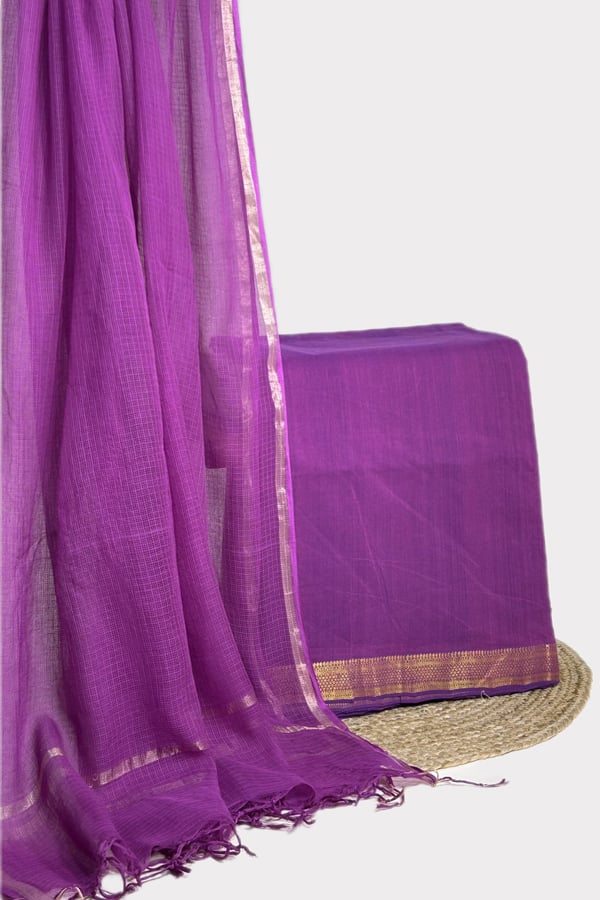 2.5mtr Each – Kota Doria Dupatta with Mangalgiri Zari Border Handwoven Cotton Top Fabric Set