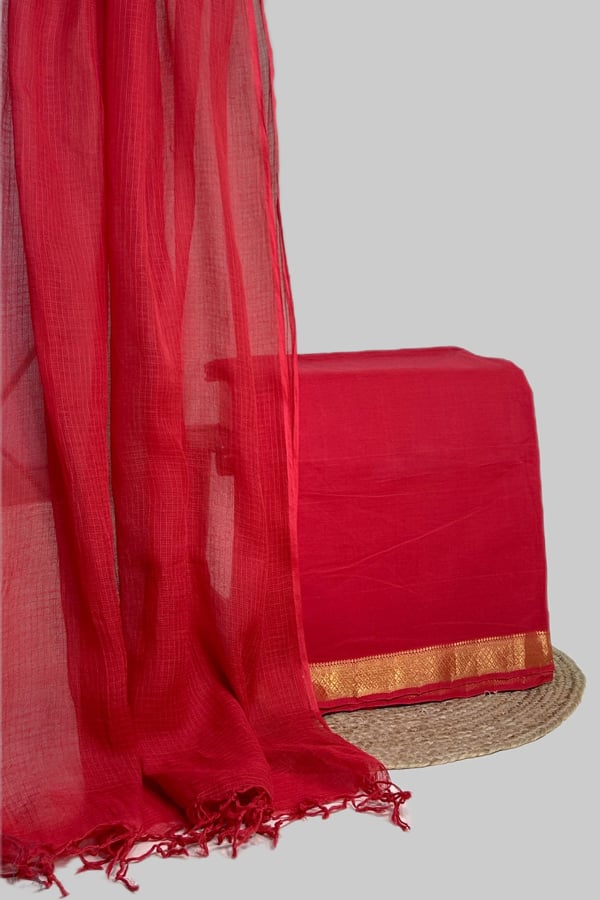 2.5mtr Each – Kota Doria Dupatta with Mangalgiri Zari Border Handwoven Cotton Top Fabric Set