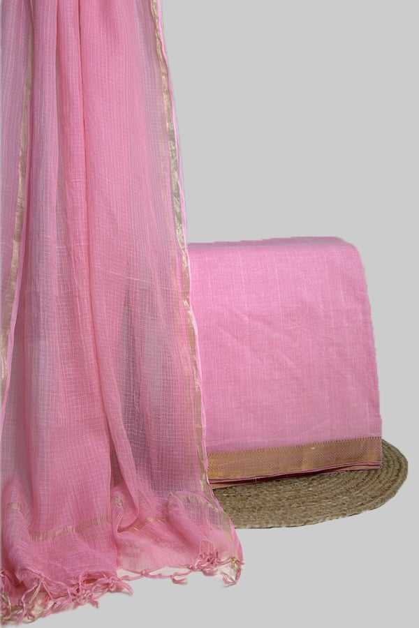 2.5mtr Each – Kota Doria Dupatta with Mangalgiri Zari Border Handwoven Cotton Top Fabric Set
