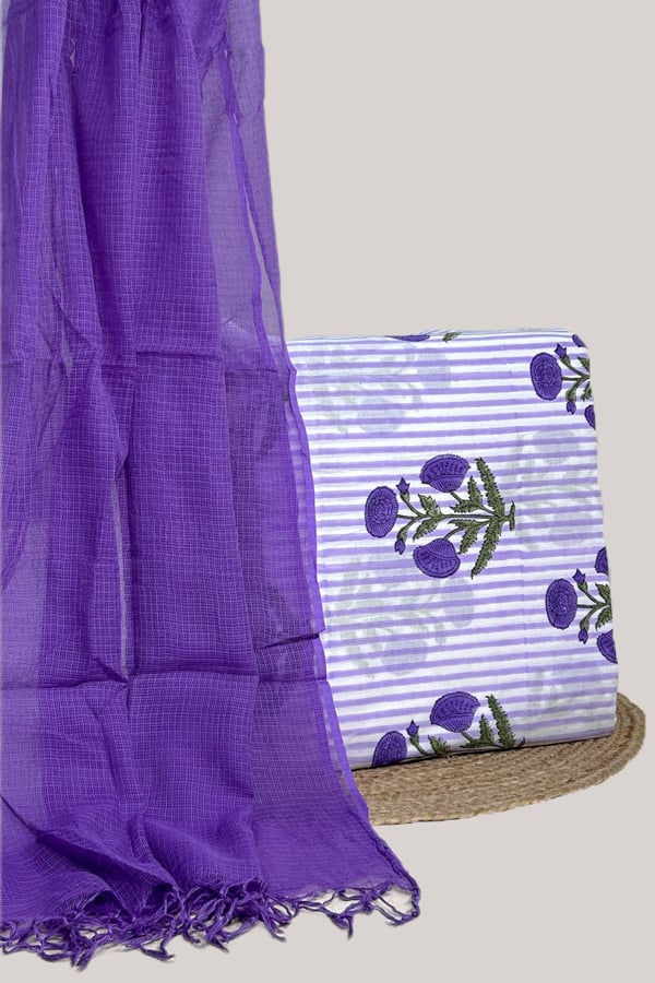 2.5mtr Each – Kota Doria Dupatta with HandBlock Printed Pure Soft Cotton Top Fabric Set