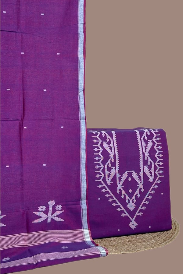 2Pc Set (3mt Top + 2.5mt Bottom) Handloom Embroidered Neck Design Soft Cotton Top(3m) Bottom(2.5m) Fabric Set