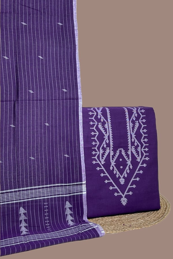 3Pc (3mtr Top) Handloom Woven Neck Design Soft Cotton Top(3m) Fabric Set