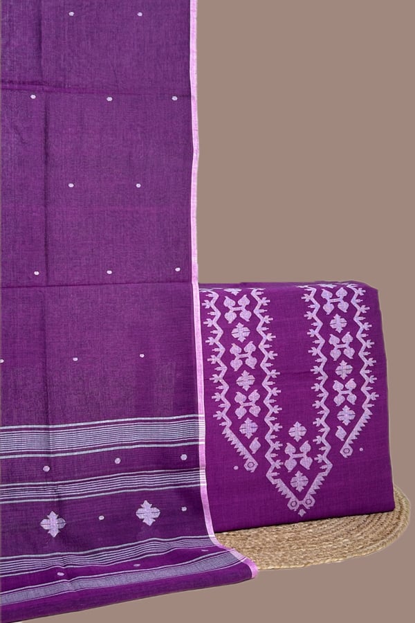 2Pc Handloom Embroidered Neck Design Soft Cotton Top(3m) Bottom(2.5m) Fabric Set