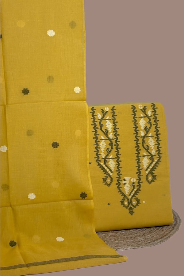 3Pc (3mtr Top) Handloom Woven Neck Design Soft Cotton Top(3m) Fabric Set