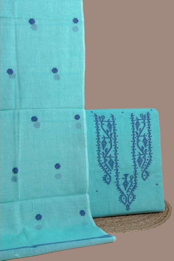 2Pc Handloom Embroidered Neck Design Soft Cotton Top(3m) Bottom(2.5m) Fabric Set