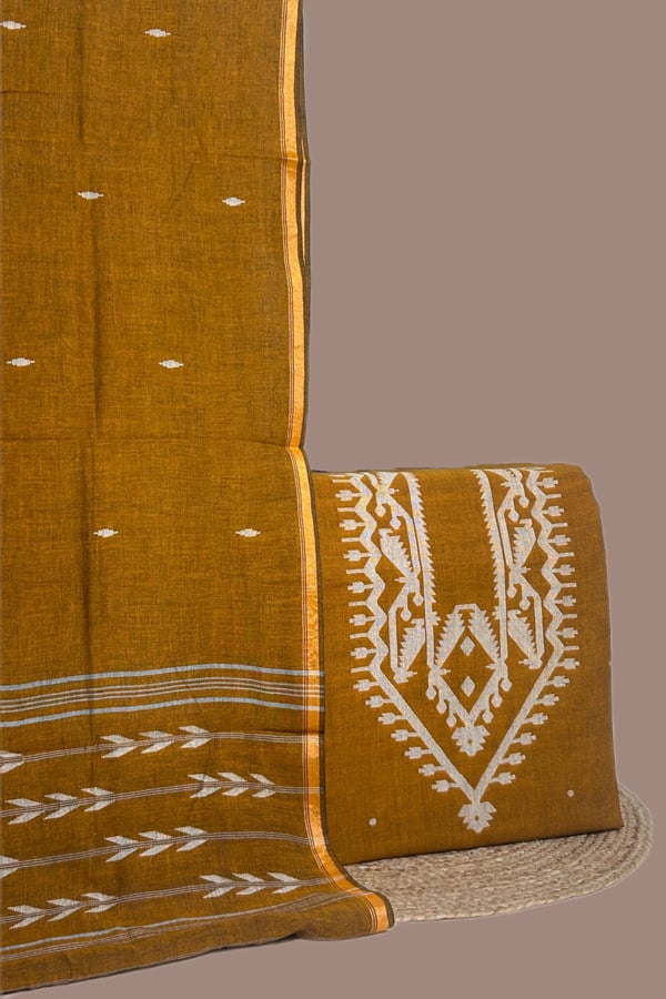 2Pc Handloom Embroidered Neck Design Soft Cotton Top(3m) Bottom(2.5m) Fabric Set