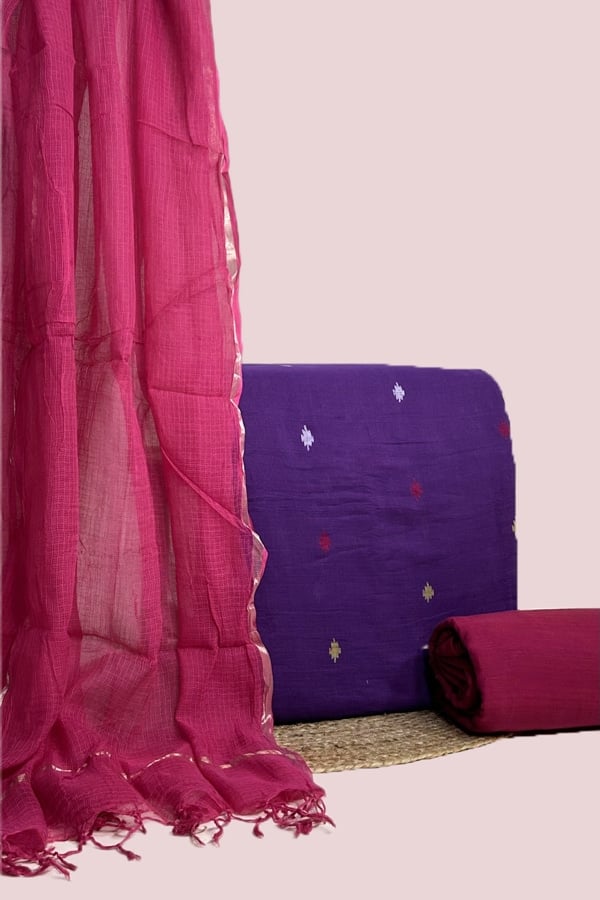 3pc Kota Doria Dupatta and Handloom Woven Design Top Handloom Soft Cotton Bottom Fabric Set