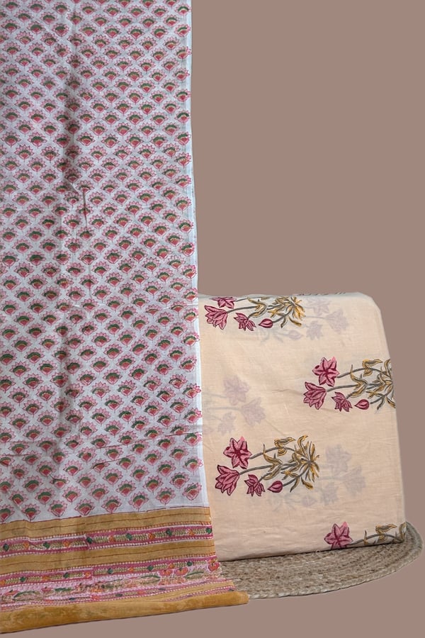 2pc Pure Soft Cotton Blockprinted Top and Bottom Fabric Set