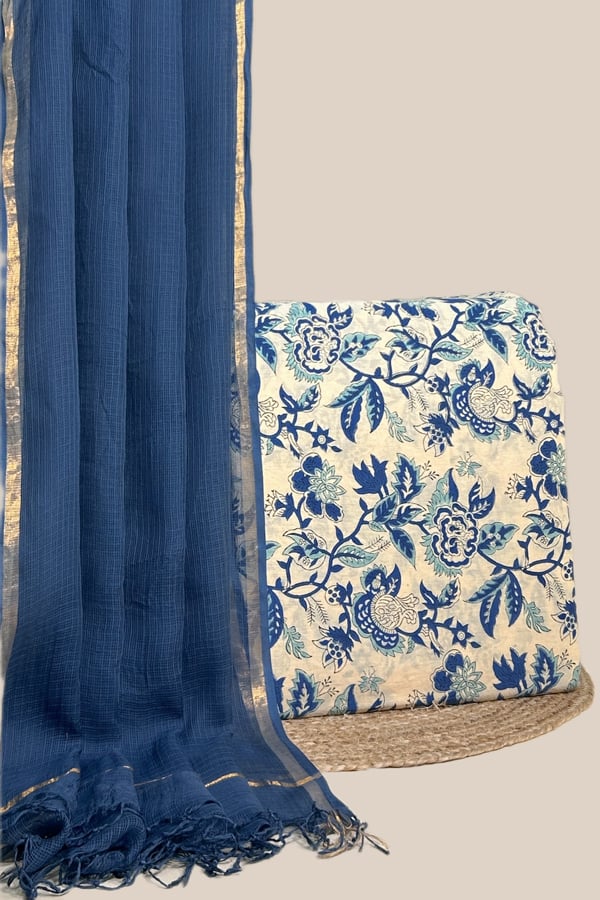 2.5mtr Each – Kota Doria Dupatta with HandBlock Printed Pure Soft Cotton Top Fabric Set
