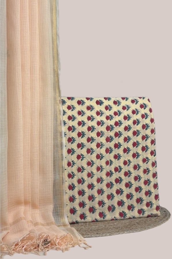 2.5mtr Each – Kota Doria Dupatta with HandBlock Printed Pure Soft Cotton Top Fabric Set