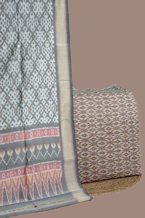 Beige – 2pc Premium Silk-Cotton Ikkat Dupatta and Soft Ikkat Cotton Silk Top Fabric Set