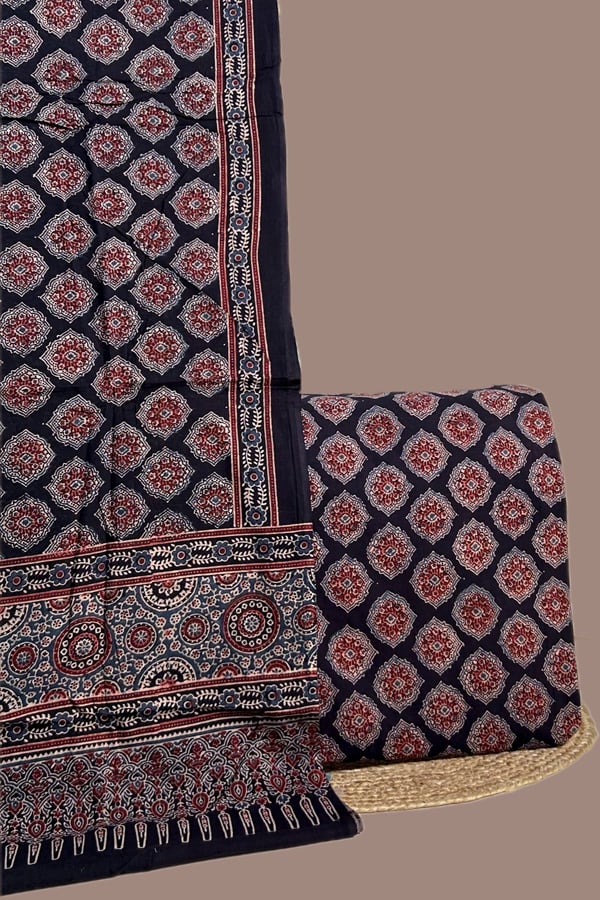 2.5mtr Each – Natural Dye Ajrakh HandBlock Printed Cotton Dupatta and Top Cotton Fabric Set