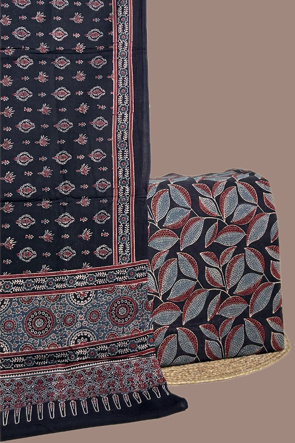 2.5mtr Each – Natural Dye Ajrakh HandBlock Printed Cotton Dupatta and Top Cotton Fabric Set