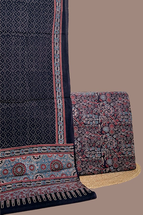 2.5mtr Each – Natural Dye Ajrakh HandBlock Printed Cotton Dupatta and Top Cotton Fabric Set