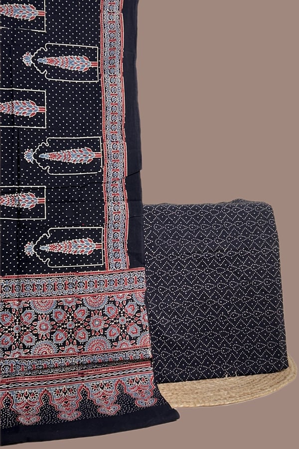 Black – 2pc Ajrakh HandCrafted Cotton Dupatta and Top Cotton Fabric Set