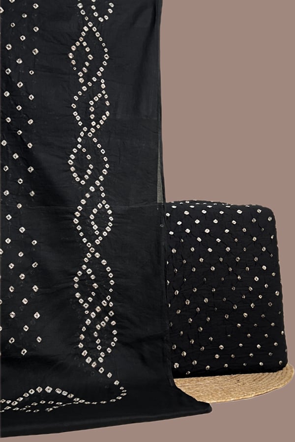 Black – 2pc Bandhani Cotton Dupatta with Cotton Bandhani Top Fabric Set