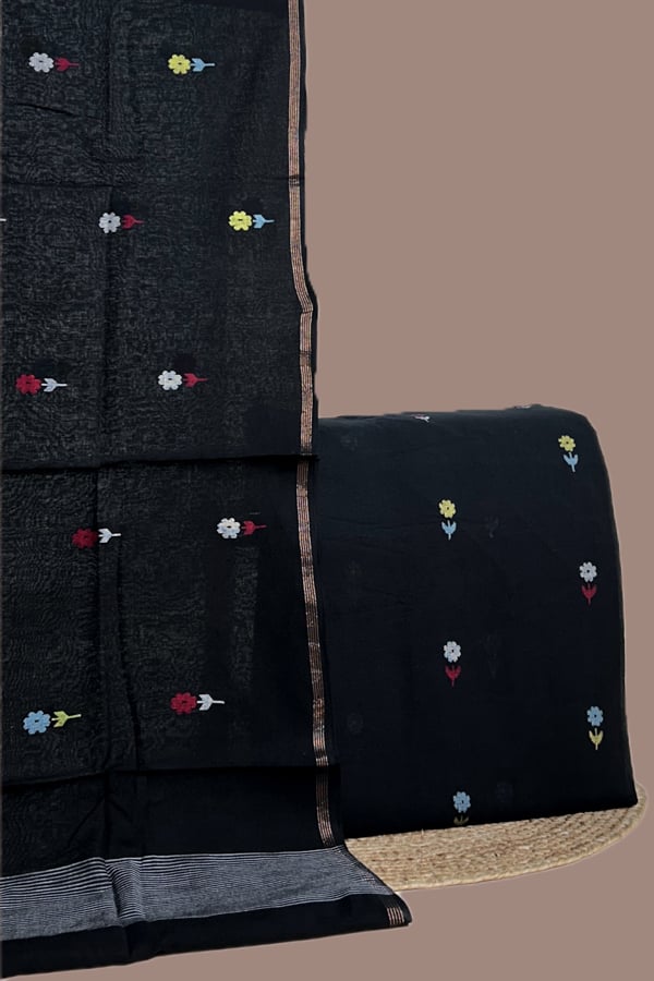 Black – 2pc Handloom Cotton Dupatta and Handloom Woven Design Top Fabric Set