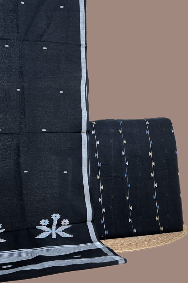 Black – 2pc Handloom Cotton Dupatta and Handloom Woven Design Top Fabric Set