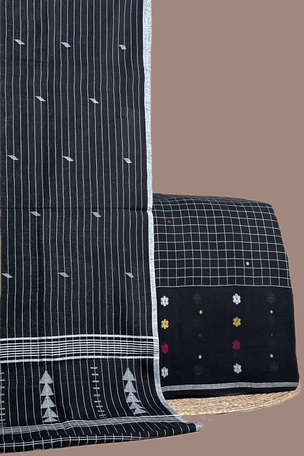 Black – 2pc Handloom Cotton Dupatta and Jamdani Intricate Woven Border Top Fabric Set
