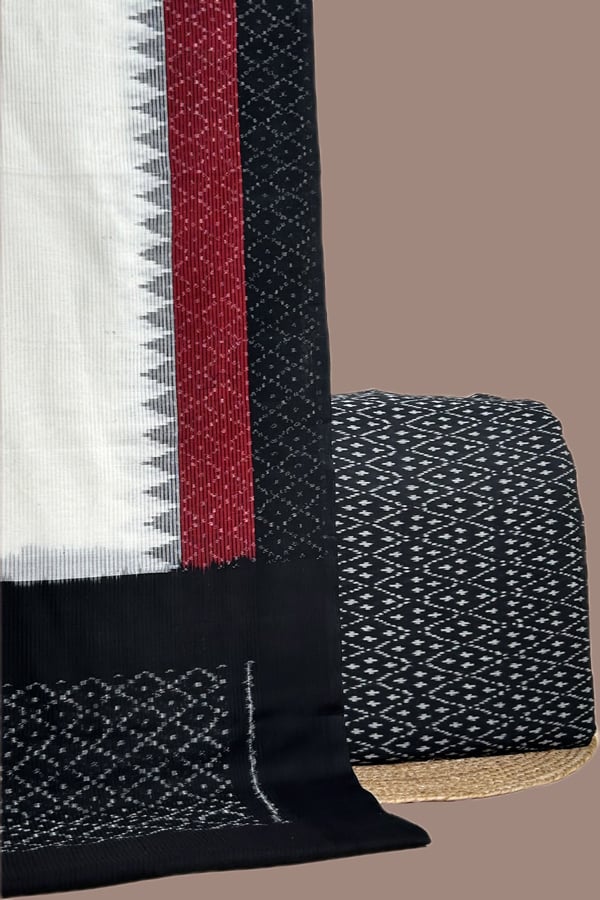 Black – 2pc Ikkat Cotton Dupatta and Handloom Soft Ikkat Cotton Top Fabric Set
