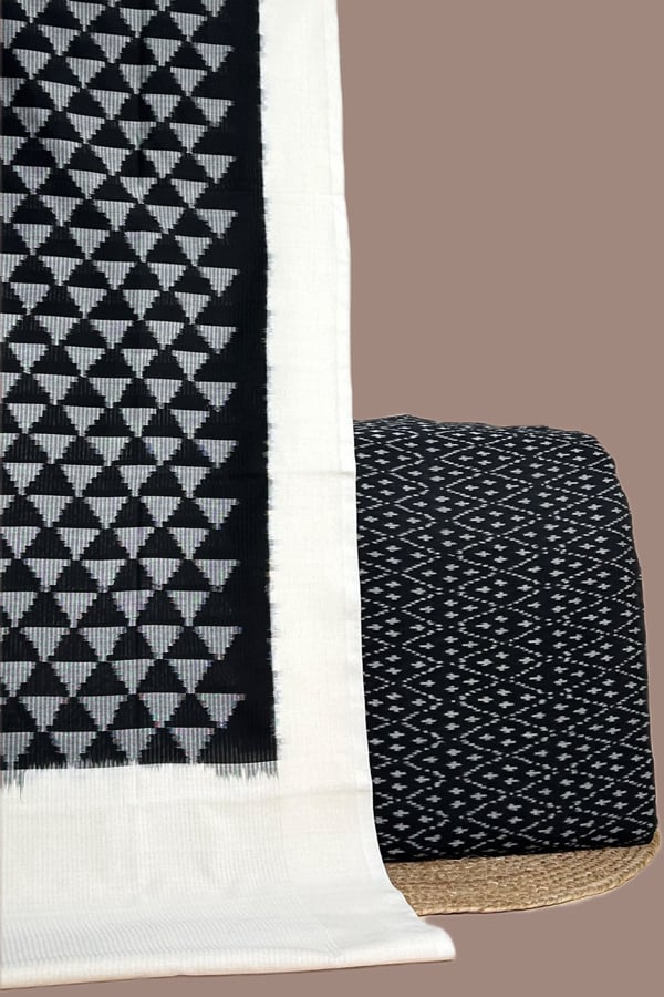Black – 2pc Ikkat Cotton Dupatta and Handloom Soft Ikkat Cotton Top Fabric Set