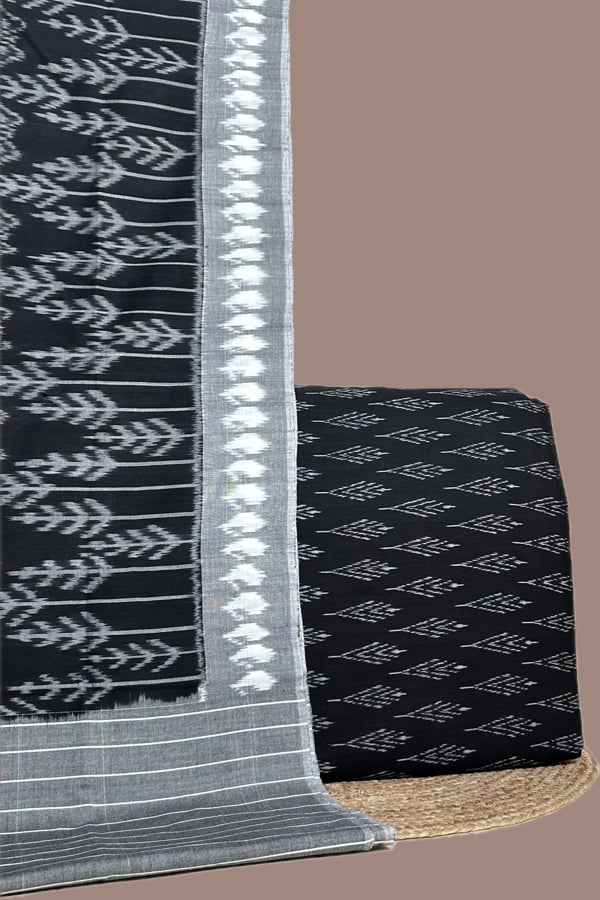 Black – 2pc Ikkat Cotton Dupatta and Handloom Soft Ikkat Cotton Top Fabric Set
